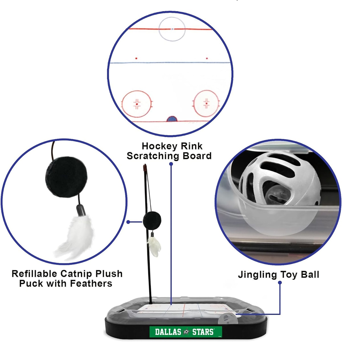 Pets First Hockey Cat Scratcher Toy with Catnip, Dallas Stars