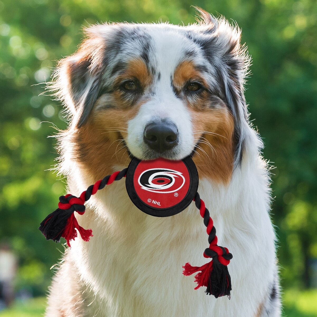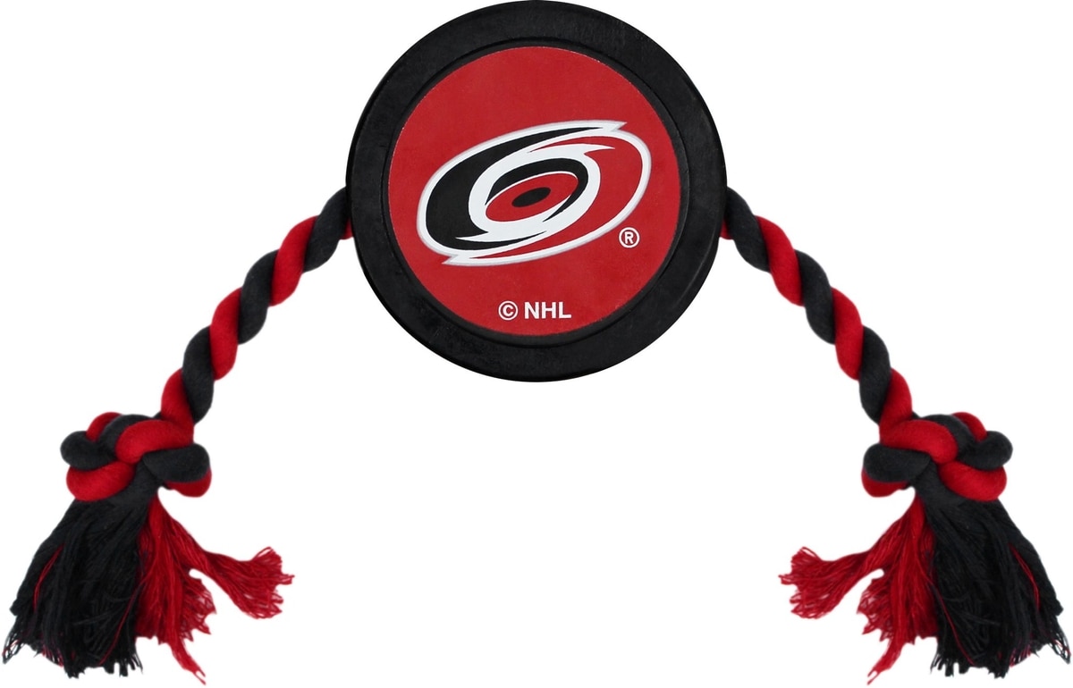Pets First Hockey Puck Tough Squeaky Dog Chew Toy, Carolina Hurricanes