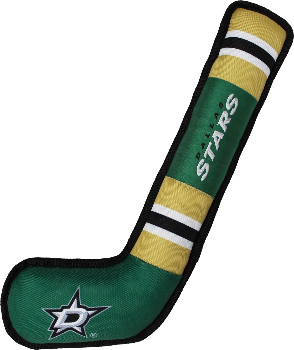 Pets First Hockey Stick Tough Squeaky Dog Chew Toy, Dallas Stars