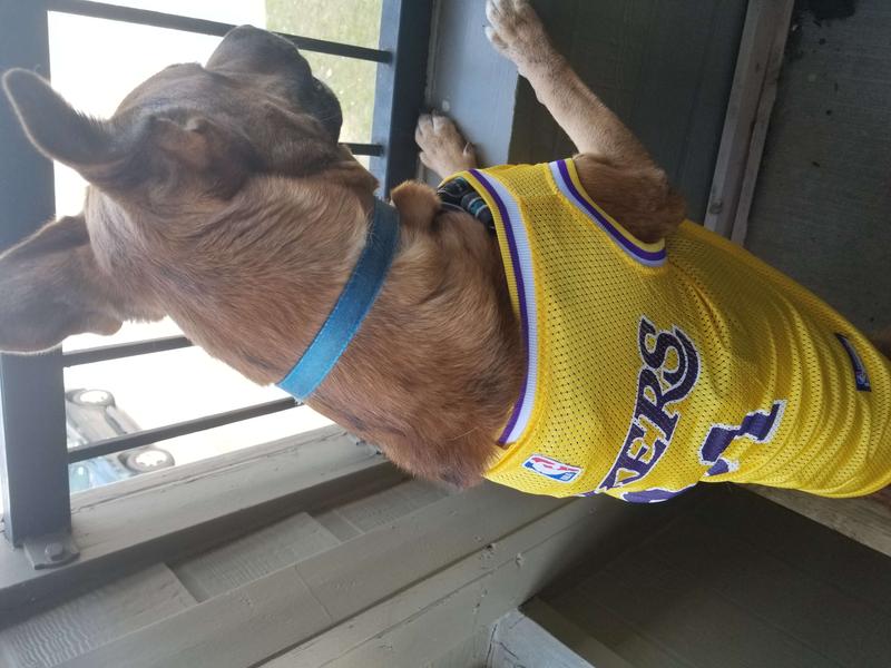 Pets First XL fits like Large in Frisco's sizing. Blue is a 50 lean Ridgeback Blue Heeler Mix with 27 inch girth. These XL Pets First jerseys are way too tight