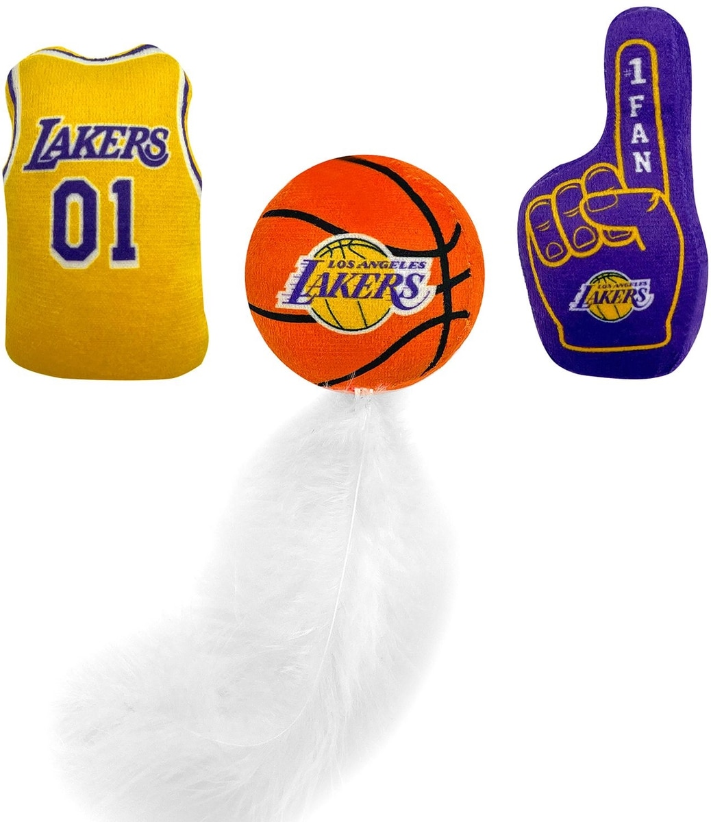 Pets First NBA Plush Cat Toys with Catnip, 3 count, LA Lakers