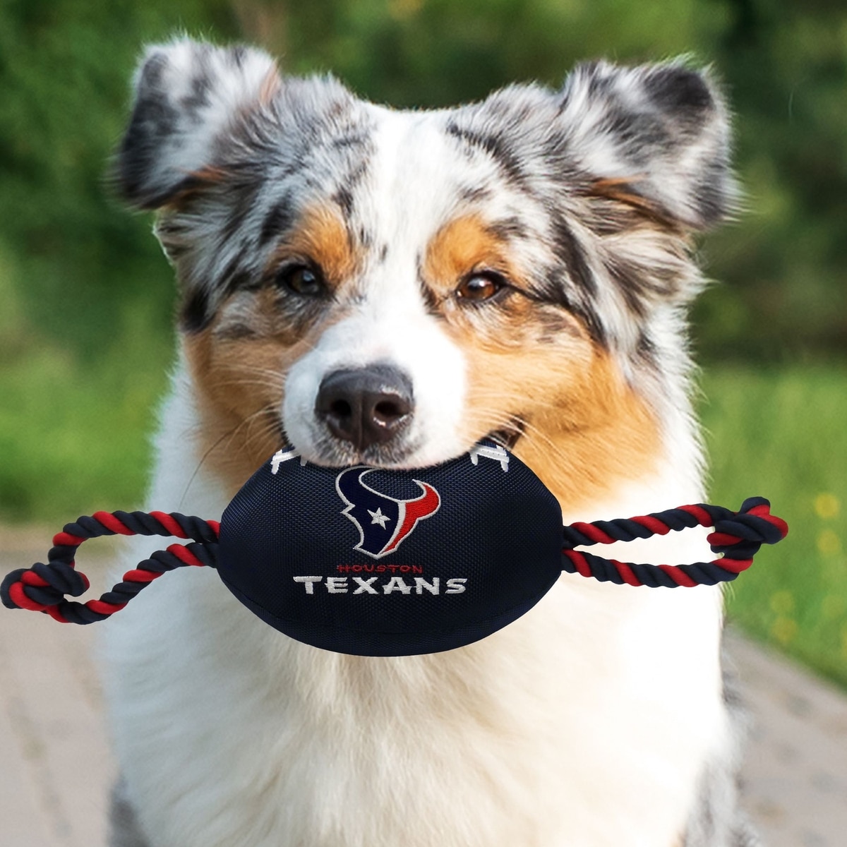 Pets First Nylon Football Tough Squeaky Dog Chew Toy, Houston Texans