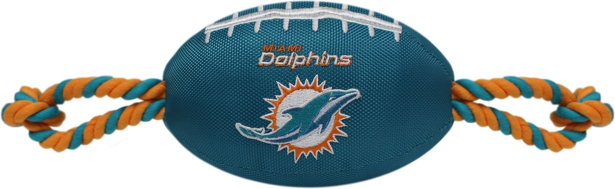 Pets First Nylon Football Tough Squeaky Dog Chew Toy, Miami Dolphins