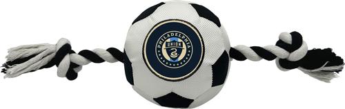 Pets First Philadelphia Union Soccer Ball Squeaky Rope Dog Toy