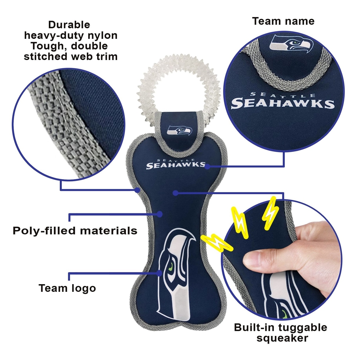 Pets First Squeaky Dental Dog Tug Toy, Seattle Seahawks