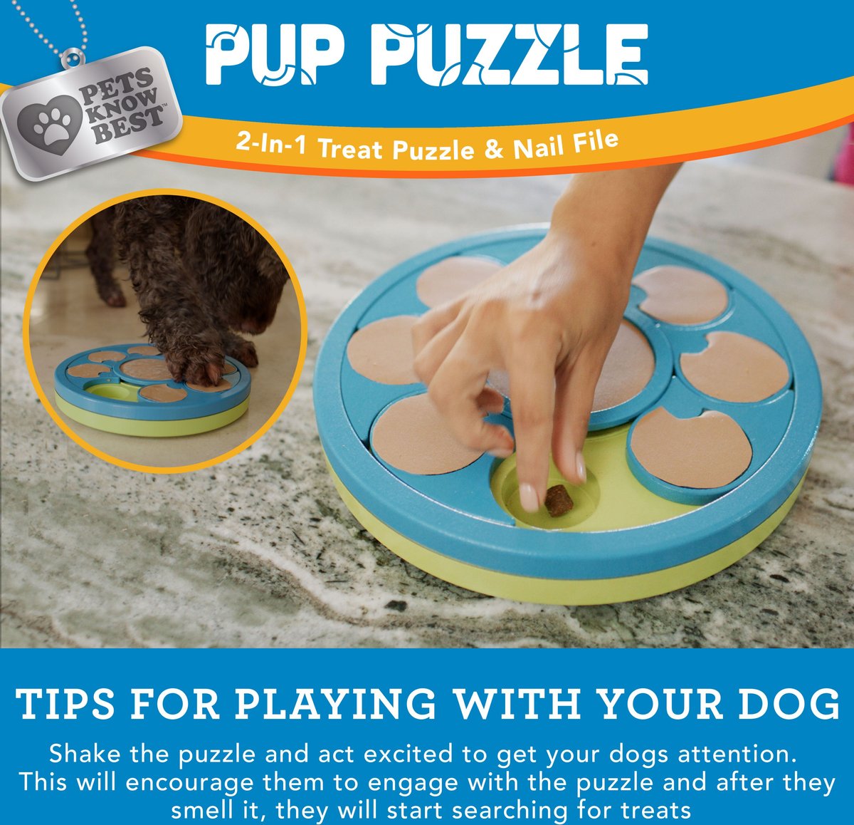Pets Know Best 2-In-1 Dog Treat Puzzle & Nail File Toy, Green