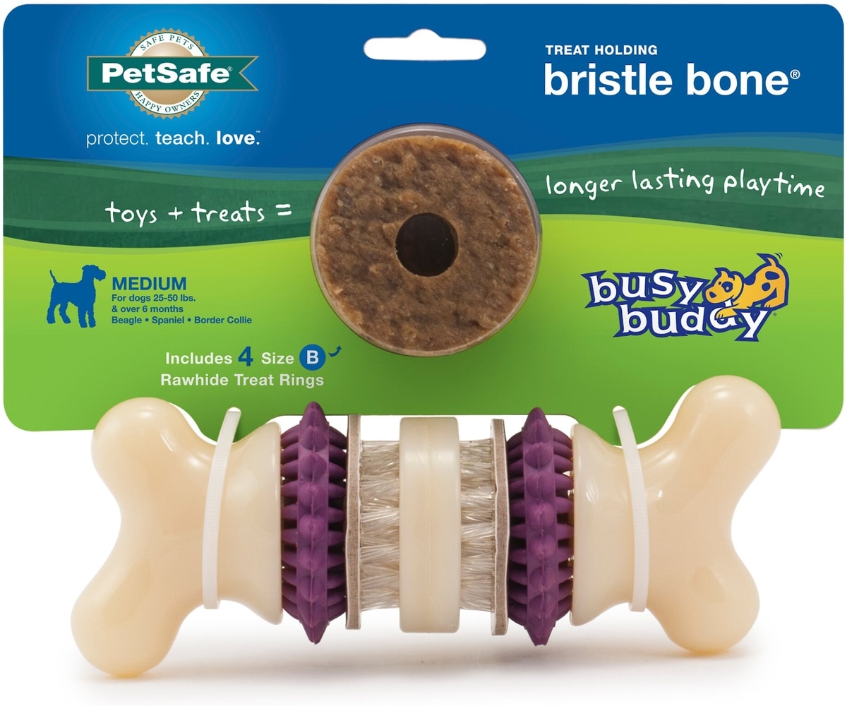 - DealPetSafe Busy Buddy Bouncy Bone Treat Dispenser Tough Dog Chew Toy, Medium, Purple$10.95 Chewy Price$12.99 List PricePromo, New Customers Only: Spend $49+, Get $20 eGift Card +1 deal