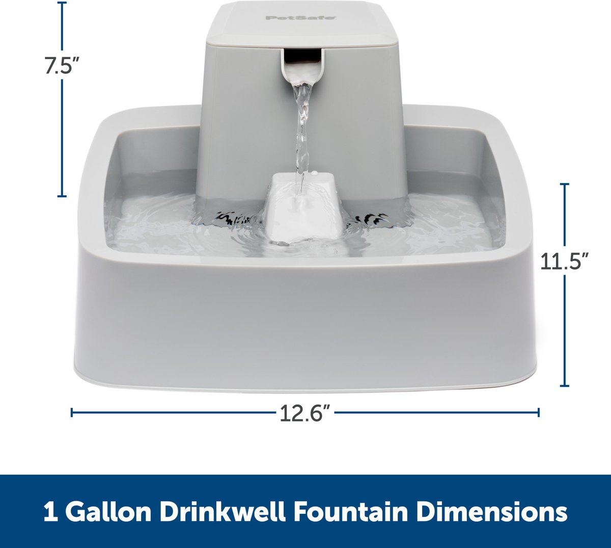 PetSafe Drinkwell Dog & Cat Water Fountain, 1-gallon—Keep your furry family member hydrated with the PetSafe Drinkwell Pet Water Fountain! This unit mimics the free-falling water stream of a kitchen sink faucet to encourage hydration. The adjustable flow control allows pet parents to choose from near-silent circulation on the lowest setting to a tranquil stream on the highest to accommodate the pickiest of pets. This fountain includes a foam and charcoal filter that removes odors and catches hair and debris, and filter replacements can be purchased here on Chewy! The unit’s constant water circulation helps prevent bacterial growth, serving up a reliable source of healthy water for your little one. Made of BPA-free plastic, the PetSafe Drinkwell 1/2-Gallon Cat Drinking Fountain is designed without any pesky corners or cracks to facilitate cleaning, and it’s safe for dishwasher use.