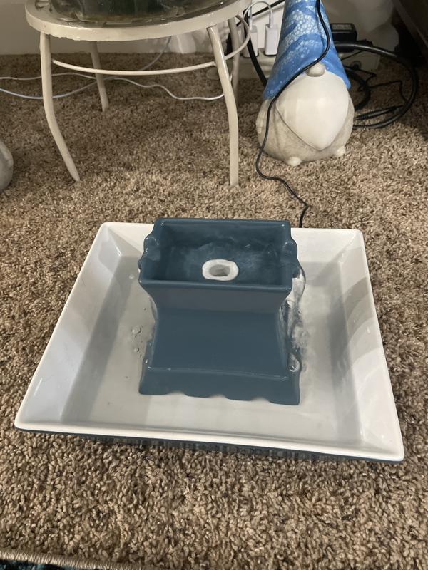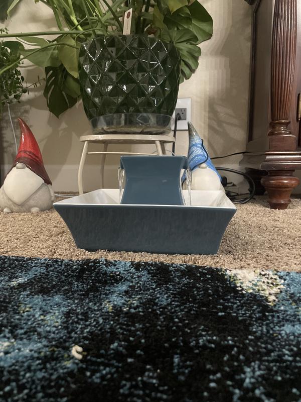 This is great if your cat is casual about drinking water. My 15lb jerk of a cat constant tips and scoots water dishes all over creation, so I thought this one would be the solution.. but no. The tower part is the fail point. He knocks that thing out of the whole dish and removes the cap from the hole that protects the wire. He also learned how to unplug it. So, we’re back to square one.