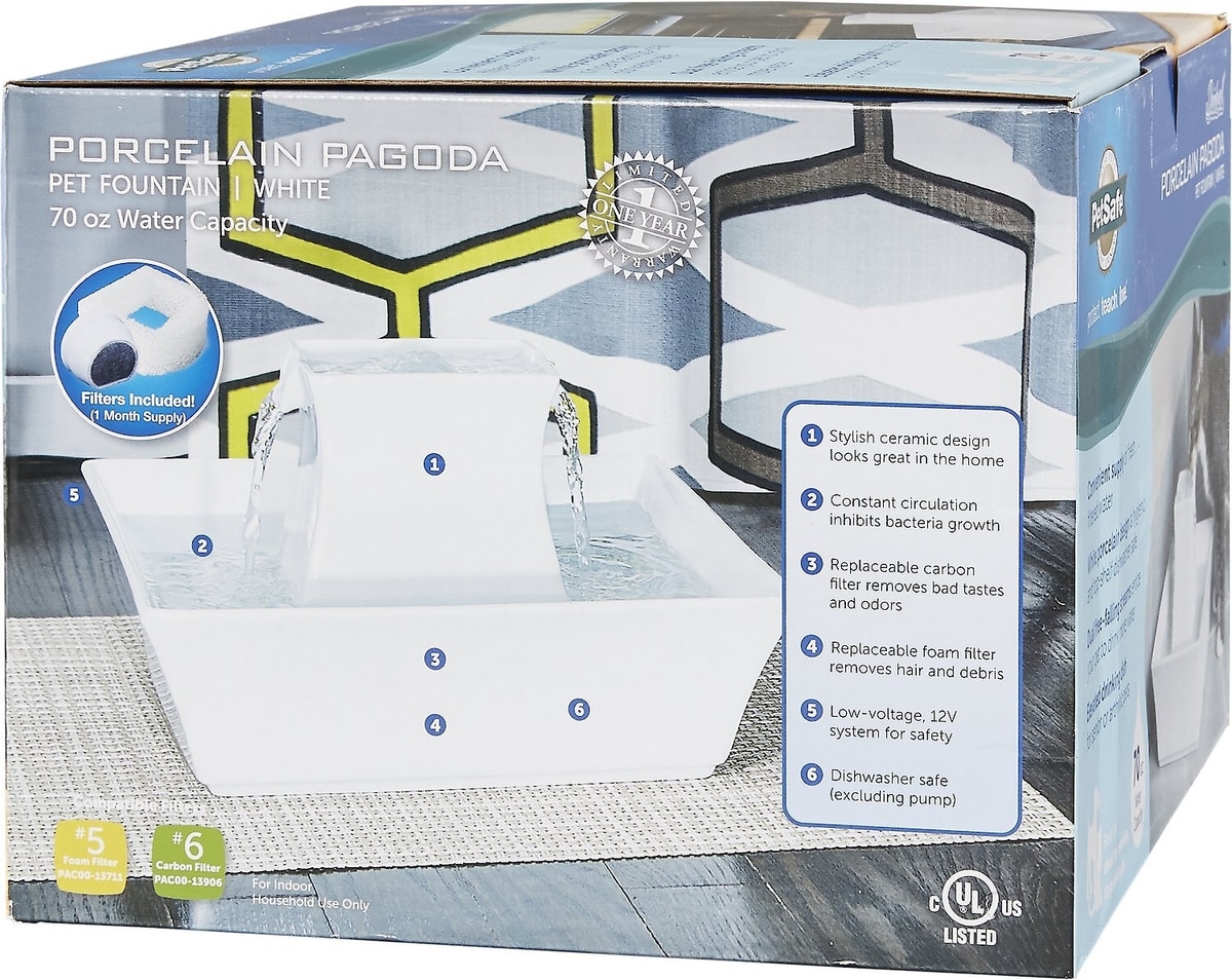 PetSafe Drinkwell Pagoda Ceramic Dog & Cat Fountain, White, 70-oz