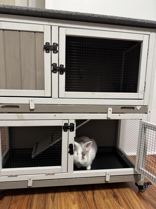 • This generously sized hutch offers plenty of space for 1-3 bunnies or small furbabies.