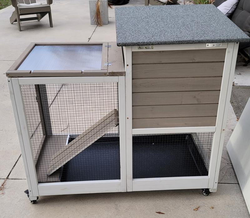 My husband and I assembled the Petscosset Indoor Wooden Rabbit Hutch with Wheels. It is well constructed and I love the two tiers. I have two small rabbits and as
