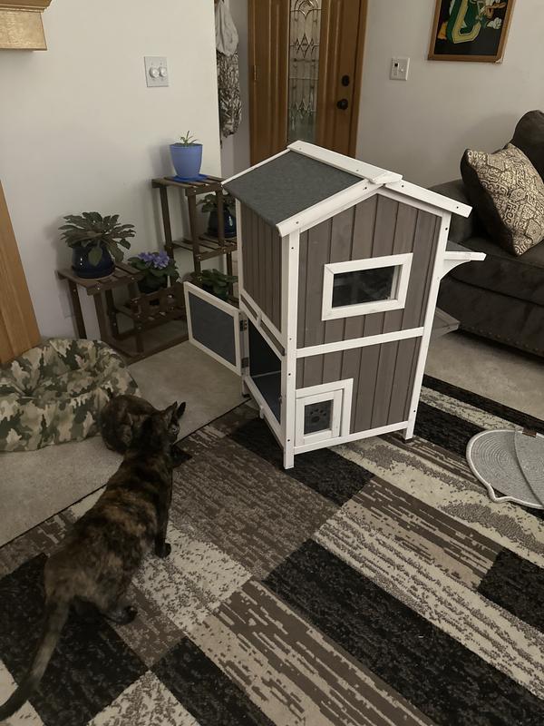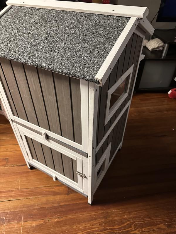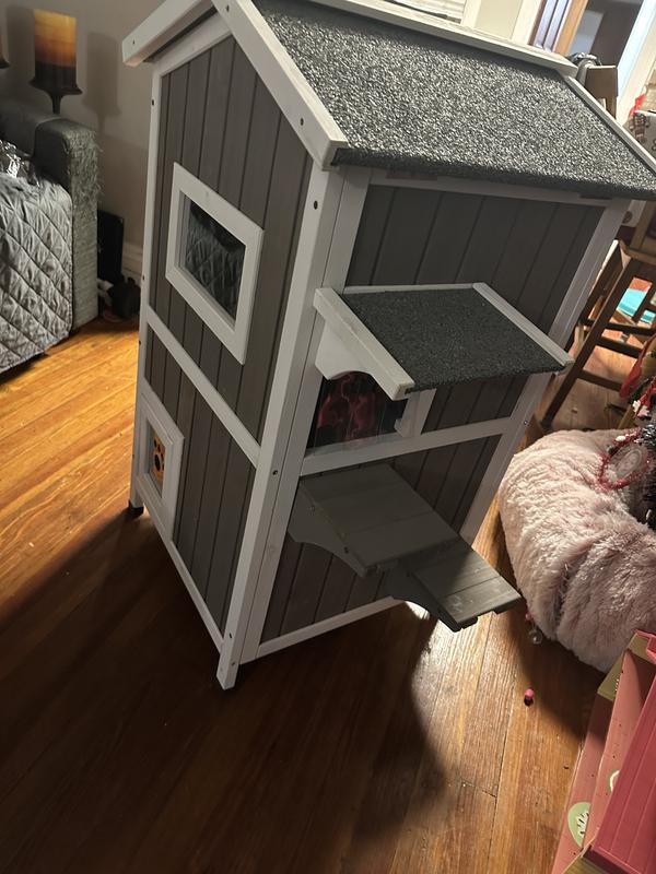 Petscosset Insulated Outdoor Wooden Two-Story Cat House, Green