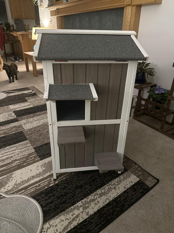 Designed for all seasons, this insulated cat shelter features a slanted asphalt roof that efficiently sheds rain and snow, while elevated bases keep the floor dry. Ideal for winter use, it offers cats a comfortable, safe haven in any weather.