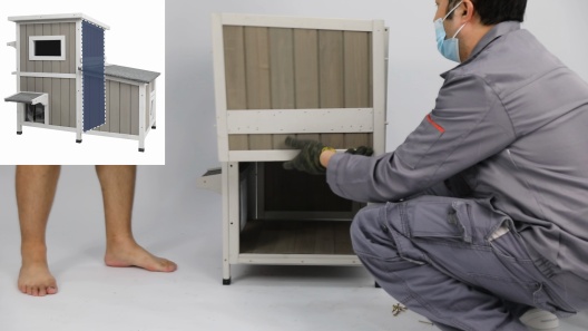Petscosset 36-in Outdoor Two-Story Wooden Cat House with Extra Room, Gray
