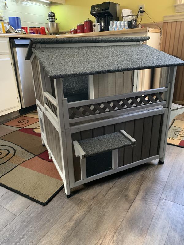 Petscosset 30-in Outdoor Wooden Two-Story Cat House with Balcony, Gray