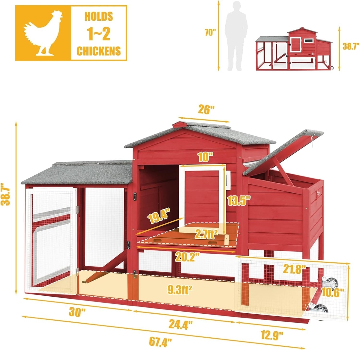 The enclosure also features a sliding door and anti-slip ramp for easy access, as well as a nesting box for comfortable egg-laying.