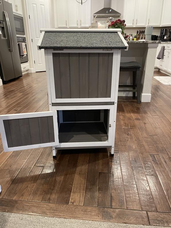 Petscosset Outdoor Wooden Two-Story Cat House with Openable Roof, Gray