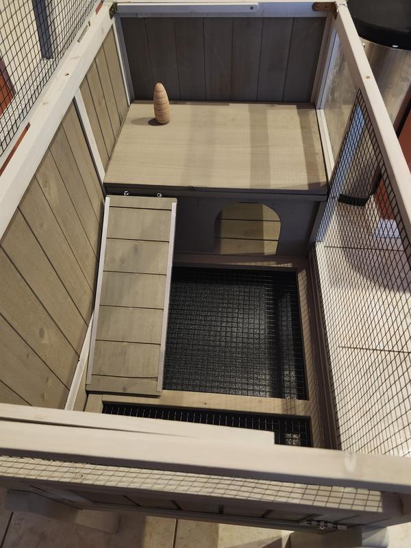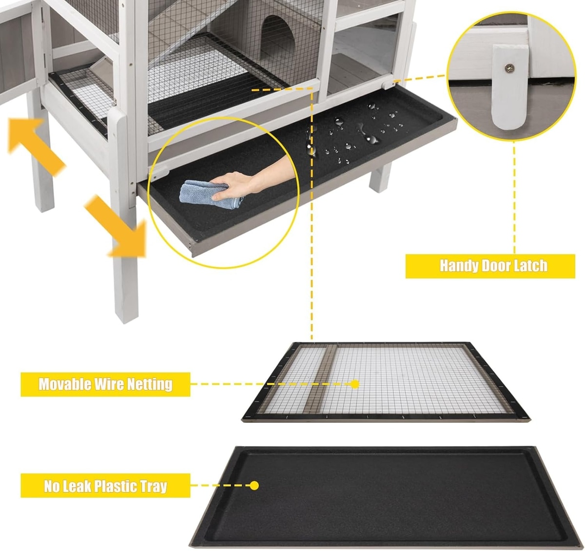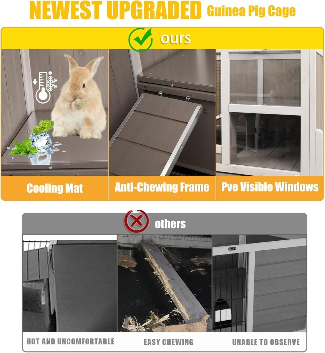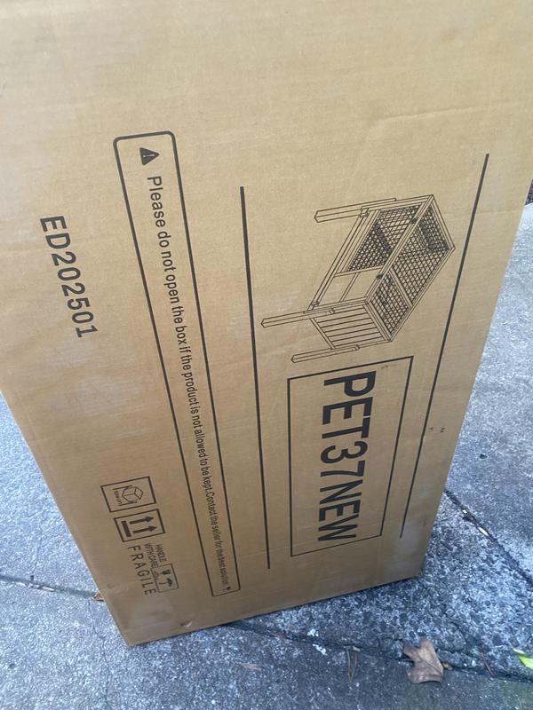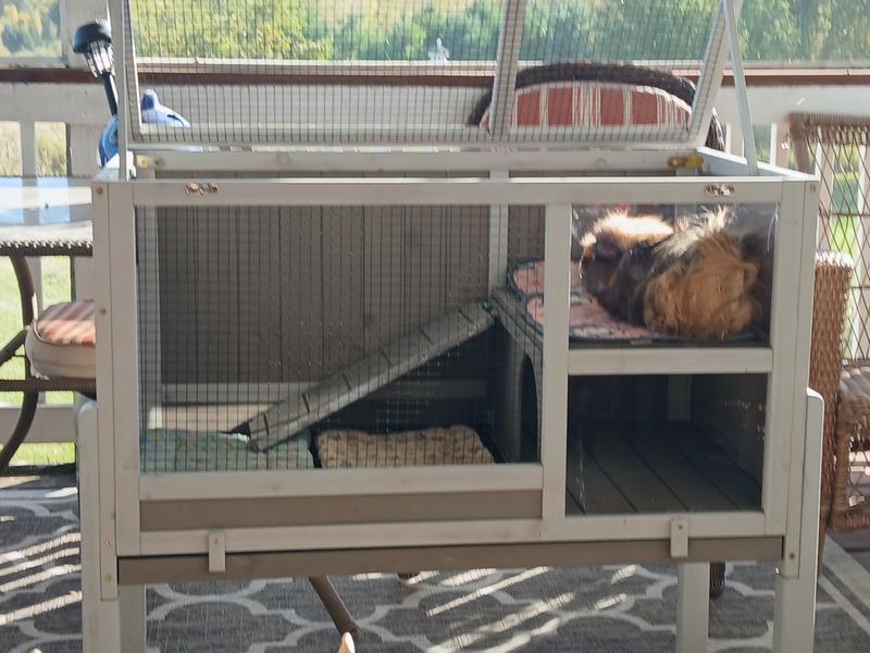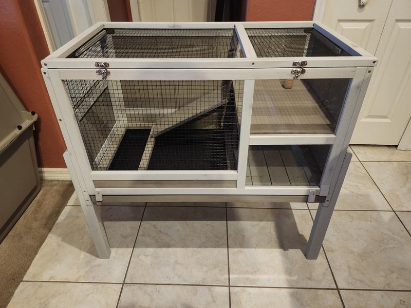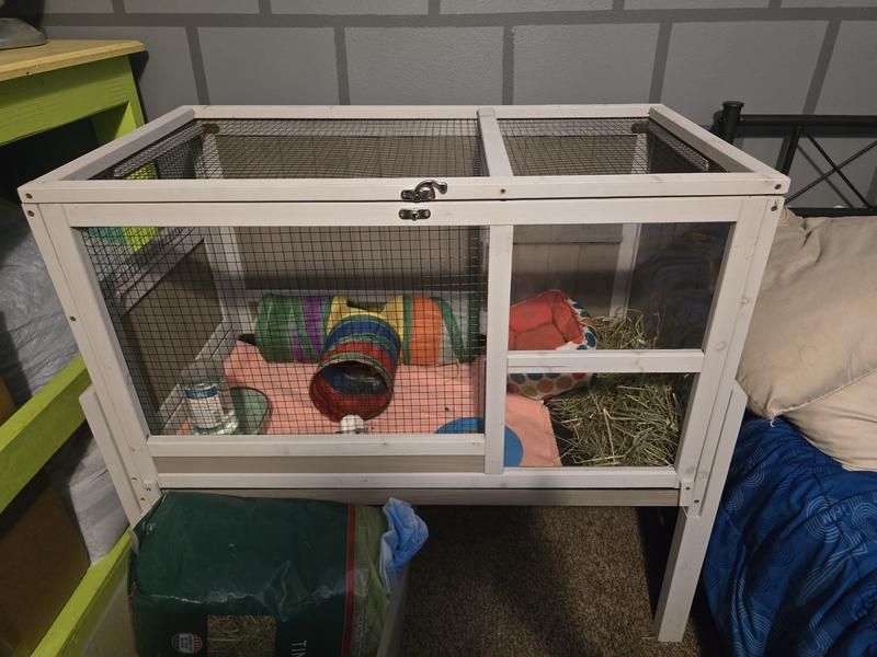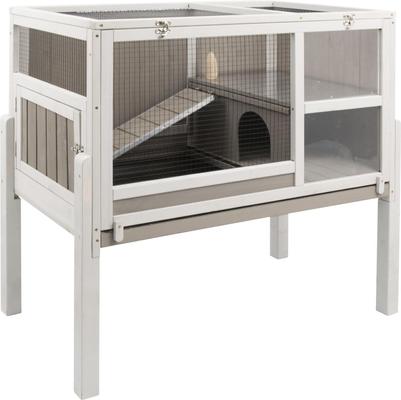 Petscosset Wooden Guinea Pig Cage with Tray, Small Animal Cage, Gray, 38-in