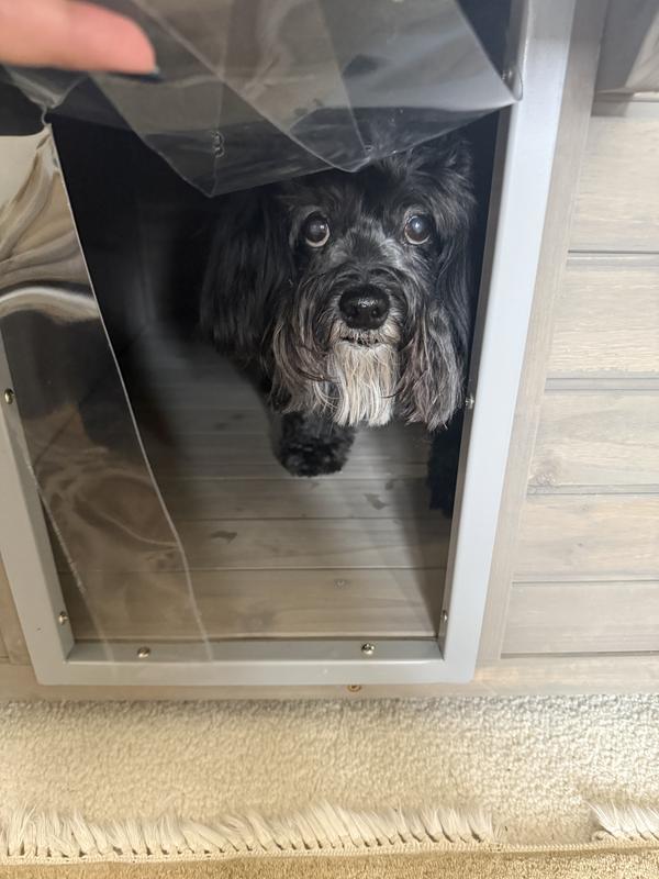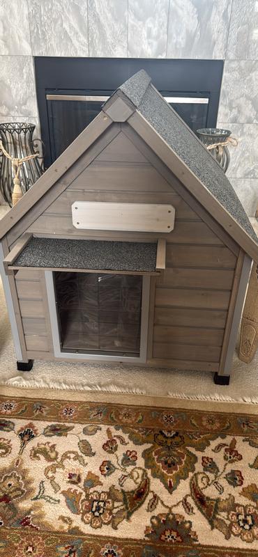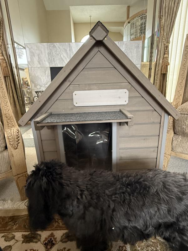 This is a heavy and sturdy dog house. Heads up, it loses a star for the paint odor that I can still smell with it being out of the box for 2 days and the assembly is very time-consuming. It took my handy husband a couple of hours to put it all together. Other than that, it’s adorable. I love the color, the side window, and the sturdiness of it. I can see using this on the deck when my dog wants to get out of the sun, or when I am working on the garden and he wants to be near me. Pablo approves!