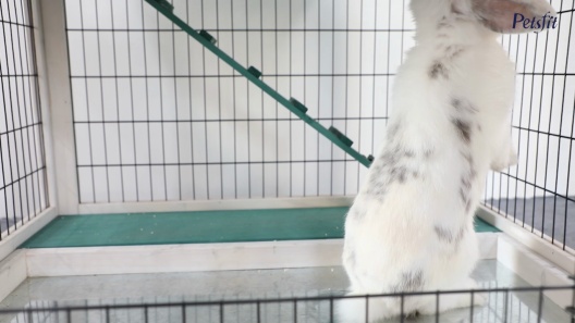 This 2-story rabbit cage provides ample space for your pet to move around and play.