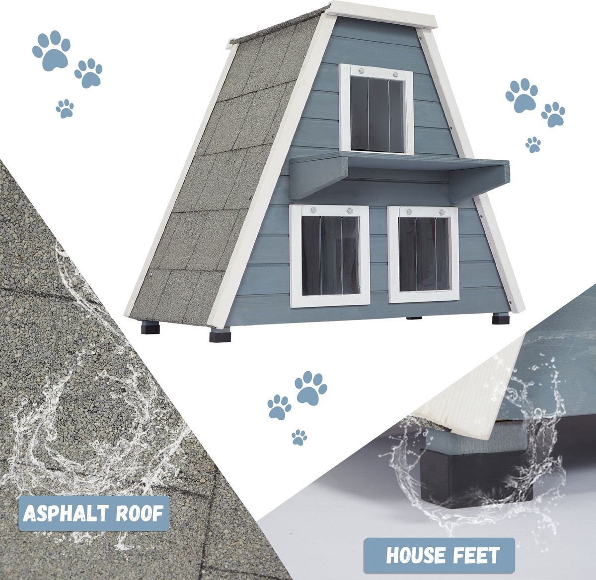 Petsfit 3 Door Insulated Wooden Outdoor Cat House, Grey