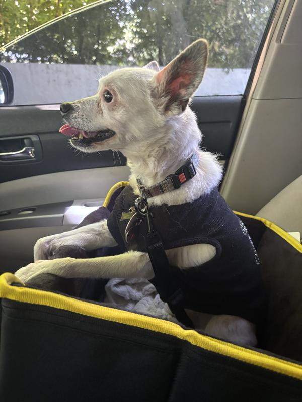 We have a puppy, always have gotten rescues in the past, and trying to outfit her before she came. I didn’t really know which seat would be best, so I chose quickly.this is ok, no issues, but something else may have been better for Janey. Nothing wrong with the product, bad judgement on my part.