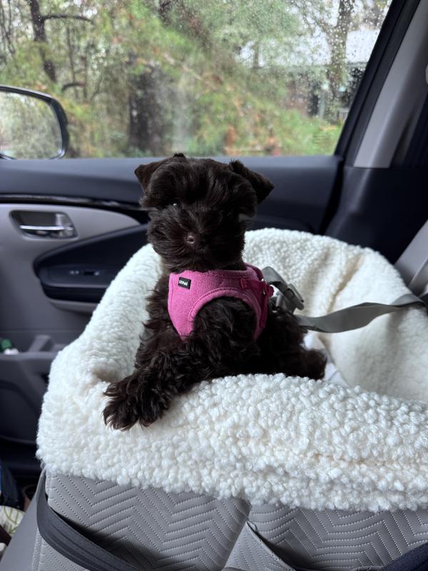 It took my pup a minute to get used to the seat and for me to adjust his tether, but he loves it. He seems to really enjoy being able to see out the windows. He