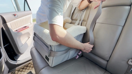 Easy to put together but hard to get the seatbelt through the attachments on the car seat to hold it in place decided to donate it to the Humane Society in our city for my dog didn’t care for it. Maybe some other dogs would enjoy it more.