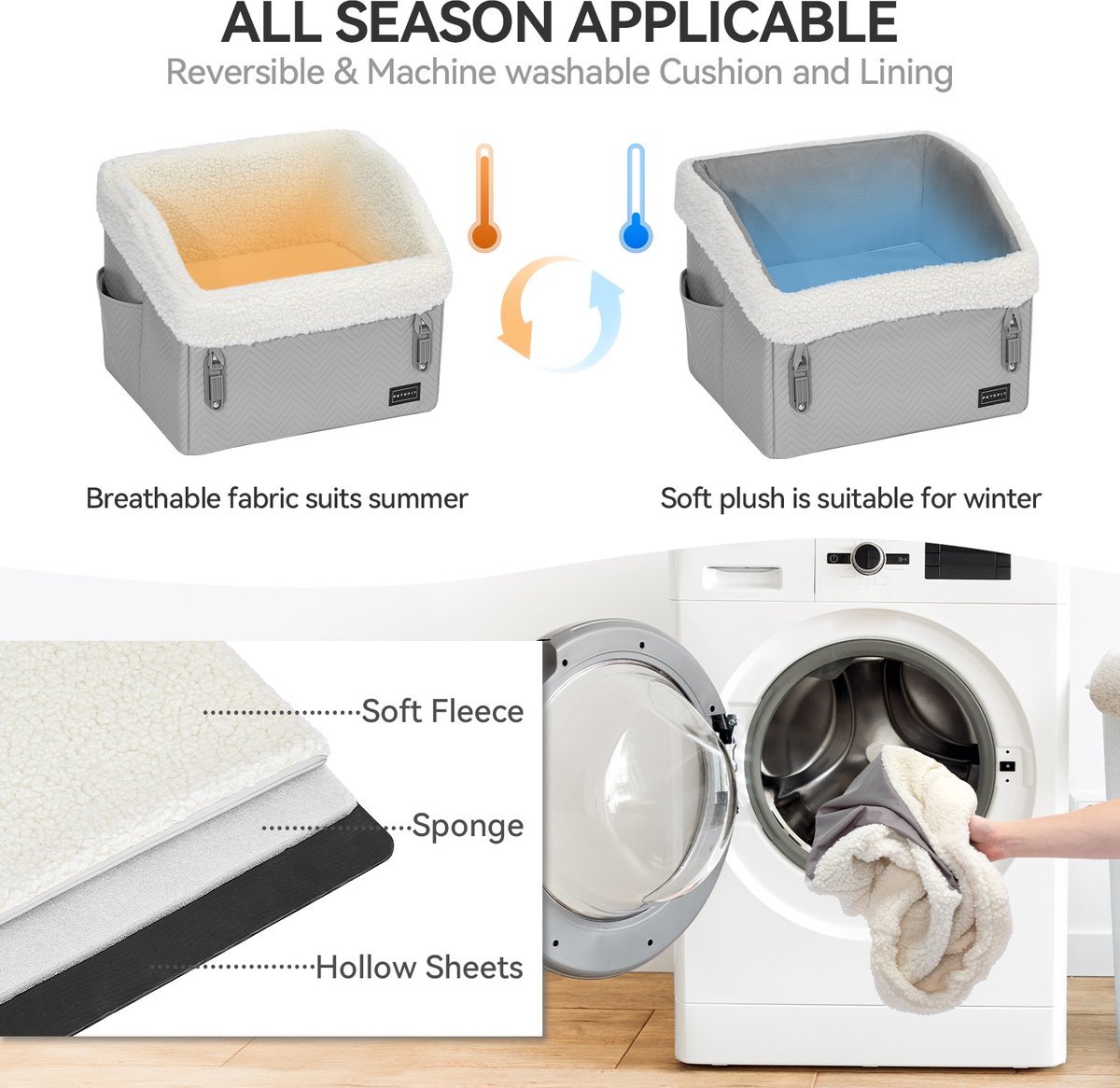 - Dual-sided cushion includes fleece and Oxford cloth for year-round comfort.