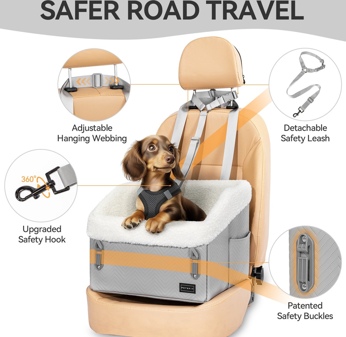 Petsfit Waterproof PU Leather Medium Dog Car Booster Seat, Grey