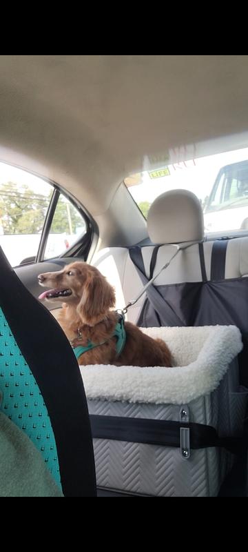 Our darling new pup, one month rescued, took to this seat with total ease, and joy! She's safe, happy and ready to travel. We are relieved, confident and ready to travel. What's better than that?