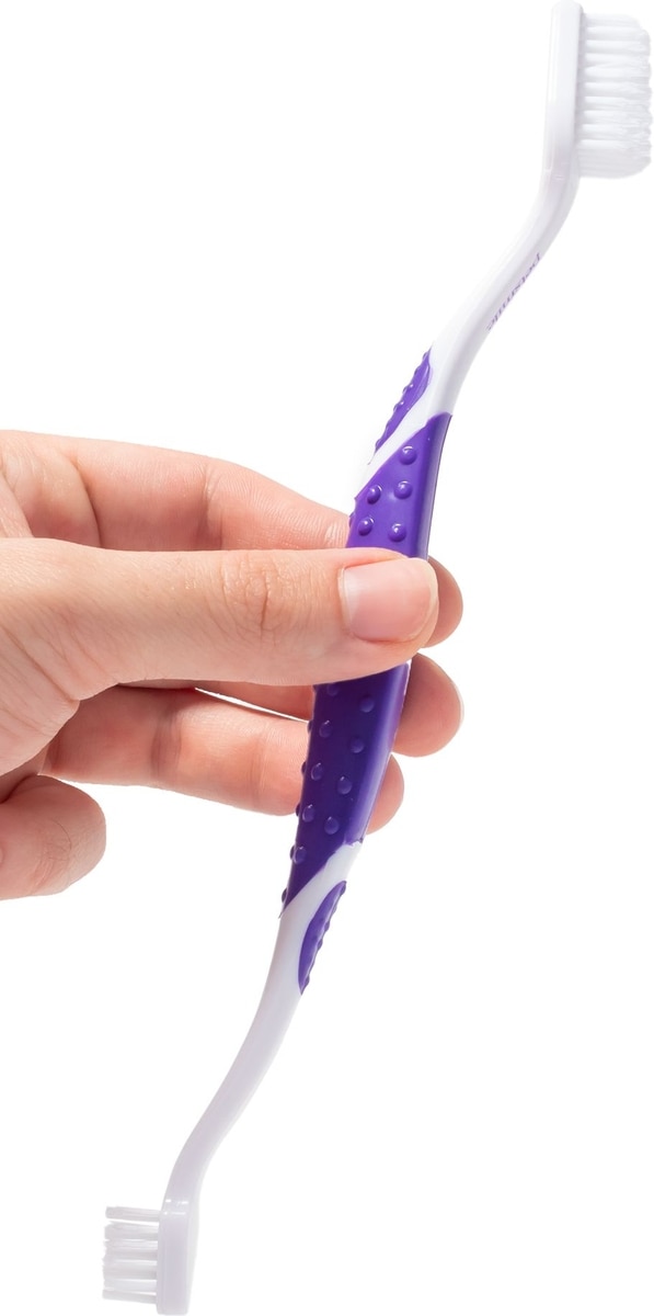 This toothbrush features five tufted rows of DuPont® soft nylon bristles.
