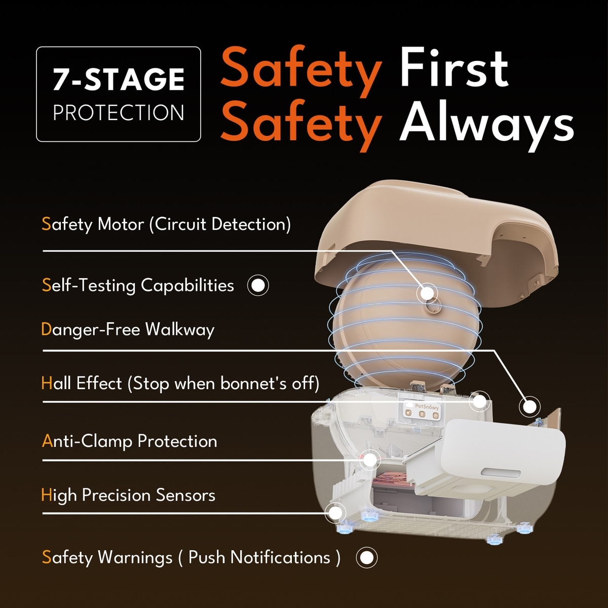 - The safe, secure cleaning process pauses instantly when your cat enters the box, ensuring their well-being at all times.