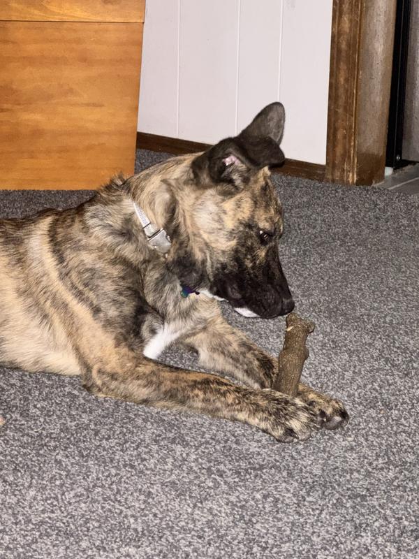 The Dogwood chew toy contains real, natural wood, so it smells like a stick fresh off the tree! It has the real wood texture and taste your dog loves, without the threat of splinters.