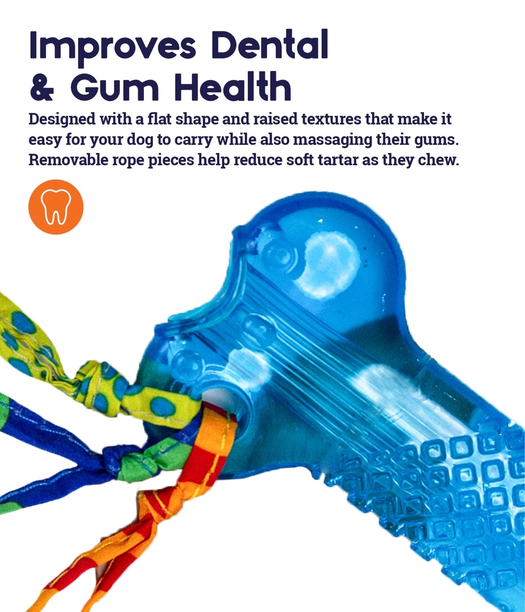 Petstages Puppy Chews have textures to massage sore gums and canvas streamers help clean teeth.