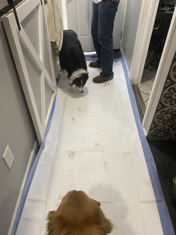 Outstanding! Not only used for potty pads but as a runner for my back door. Perfect for those muddy wet paws during the rain/snow seasons. Both my Golden retriever and Border Collie walked across them and held up and absorbed the mud and rain perfectly. No more muddy floors.