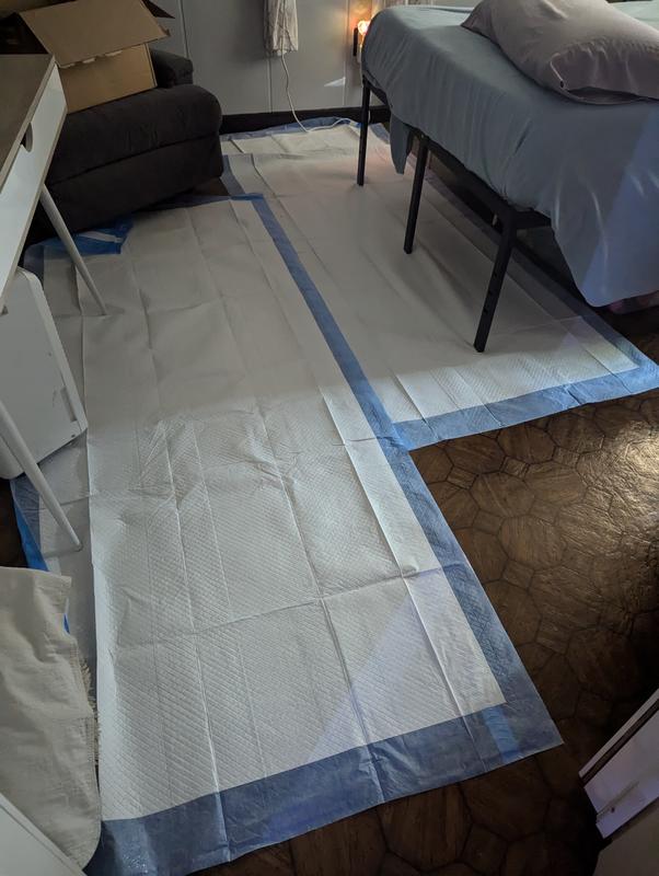 I bought the five-layer absorption quick-drying and leakproof protection pads for my baby and I got the size 4X…. they are huge!!! We just moved into a new place and I am farther away from work so that is extra time being away from home, it helps to have a back up plan. They are super reliable so I don’t have to worry about the pads leaking. They also have adhesive sticky tape so they stay put, less stress and worry. I have not only used these for potty training, I have used the pads for lining the kennel/cage. My baby doesn’t mind it at all. He uses it went I’m not able to make it on time to take him out. Definitely worth it!!!