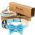 Pettsie Cotton Bow Tie Standard Dog Collar, Turquoise, Small