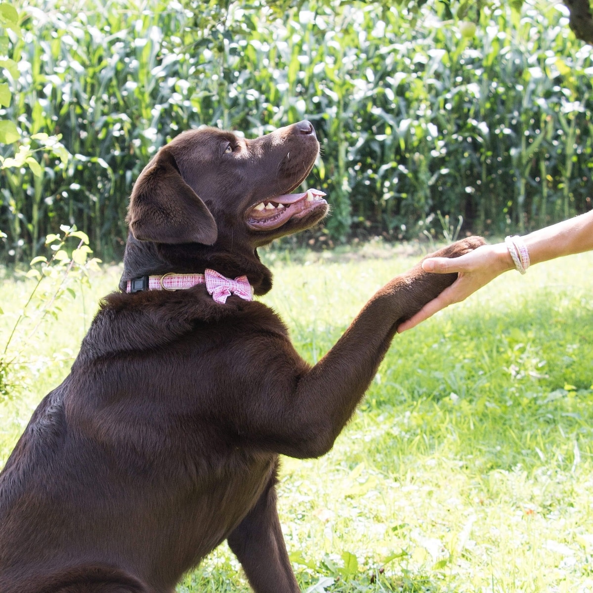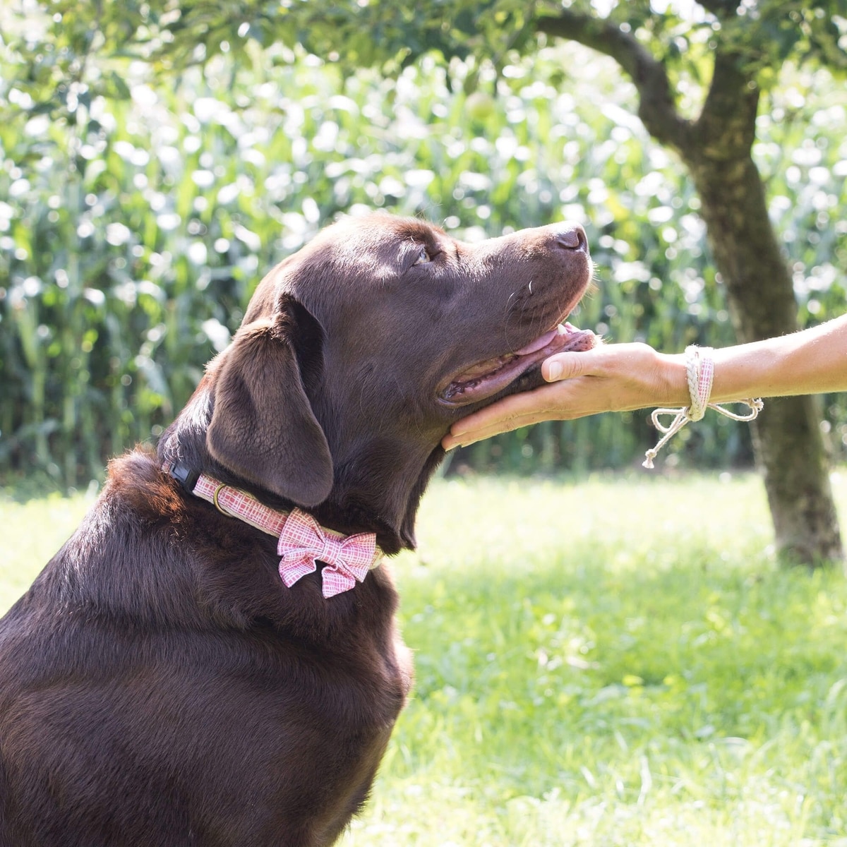 Pettsie Cotton Bow Tie Standard Dog Collar, Pink, Small