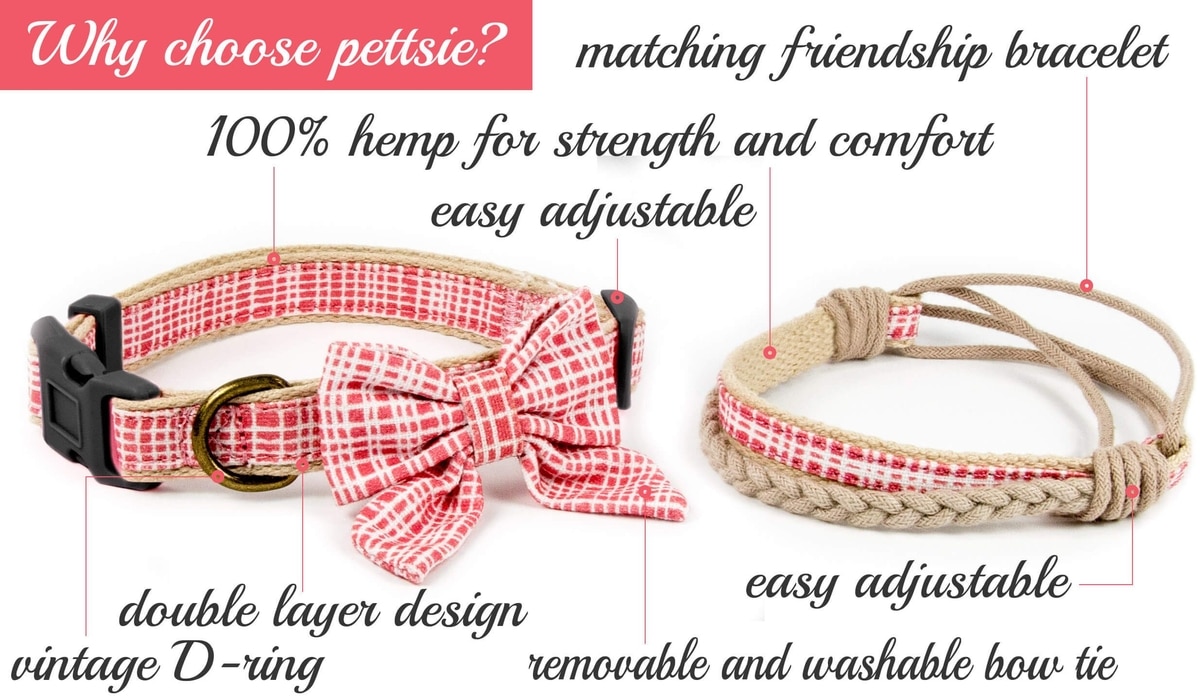 - The lightweight collar is crafted from durable hemp and canvas for years of romping, while the bracelet features soft cotton that looks as good as it feels.