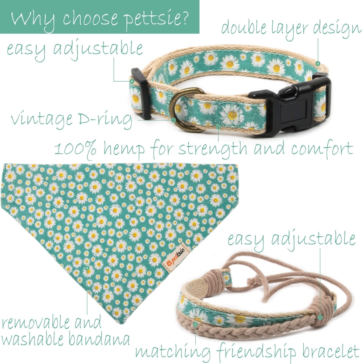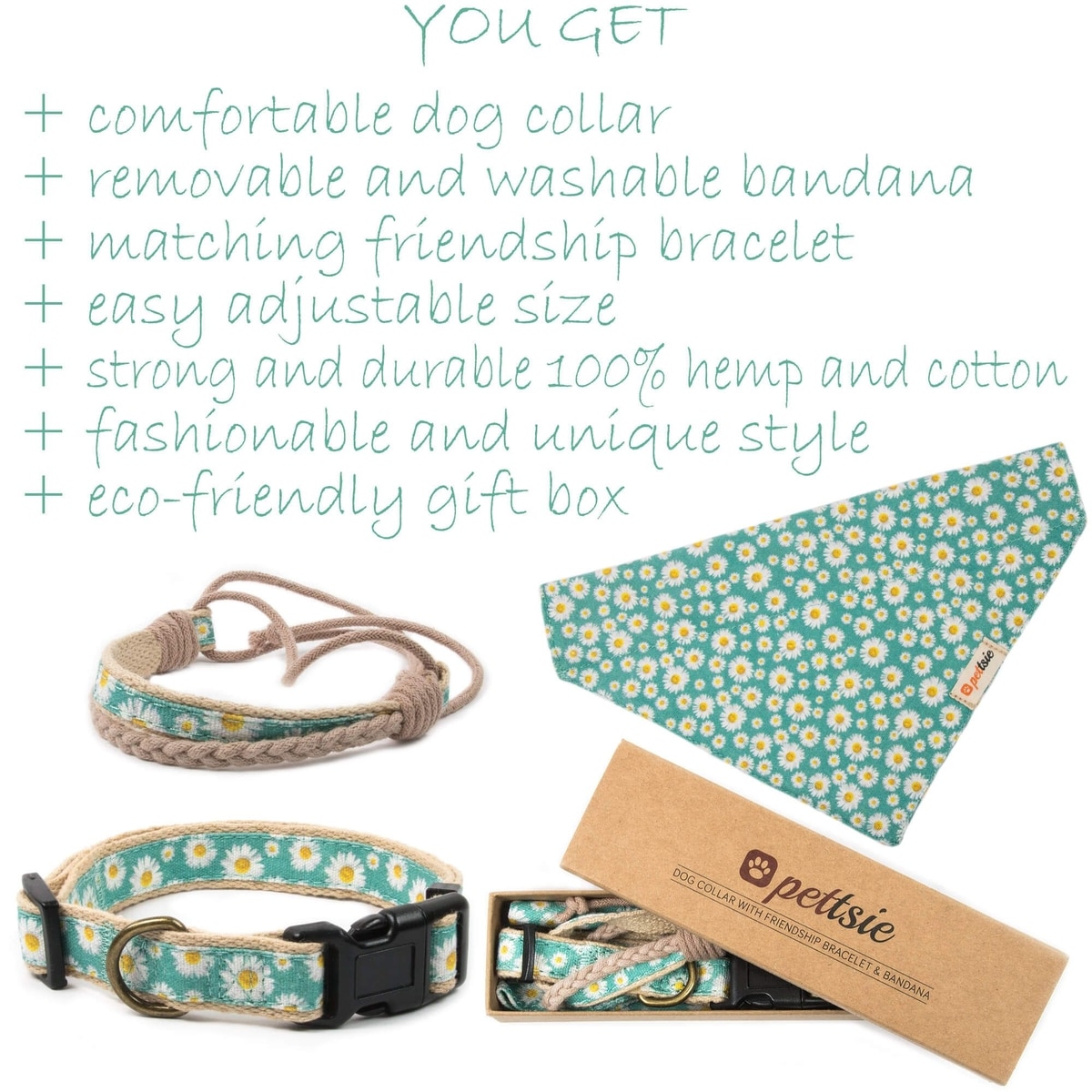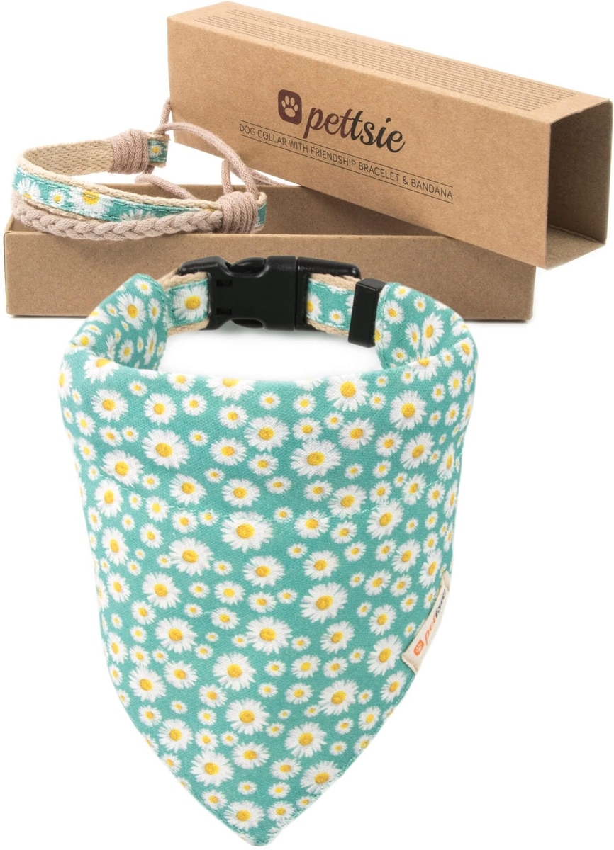 Pettsie Dog Collar Daisy & Bandana, Green, Large