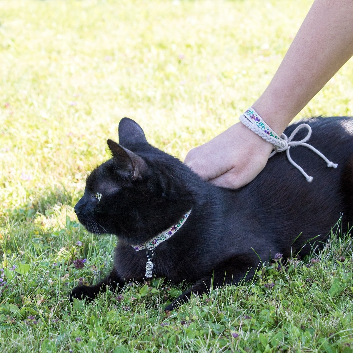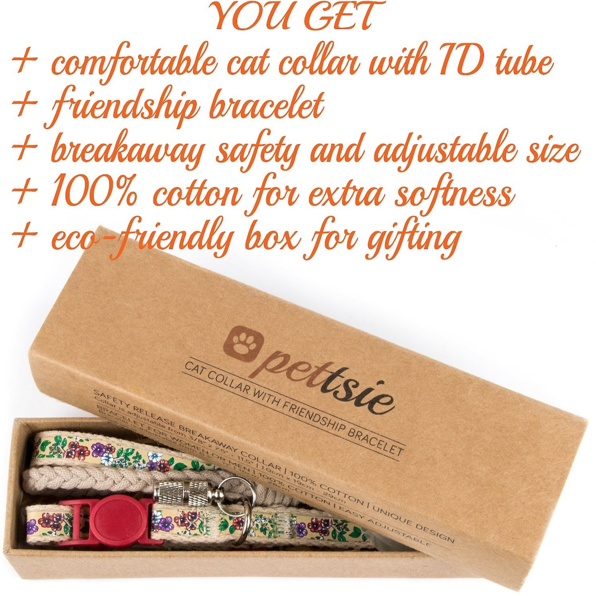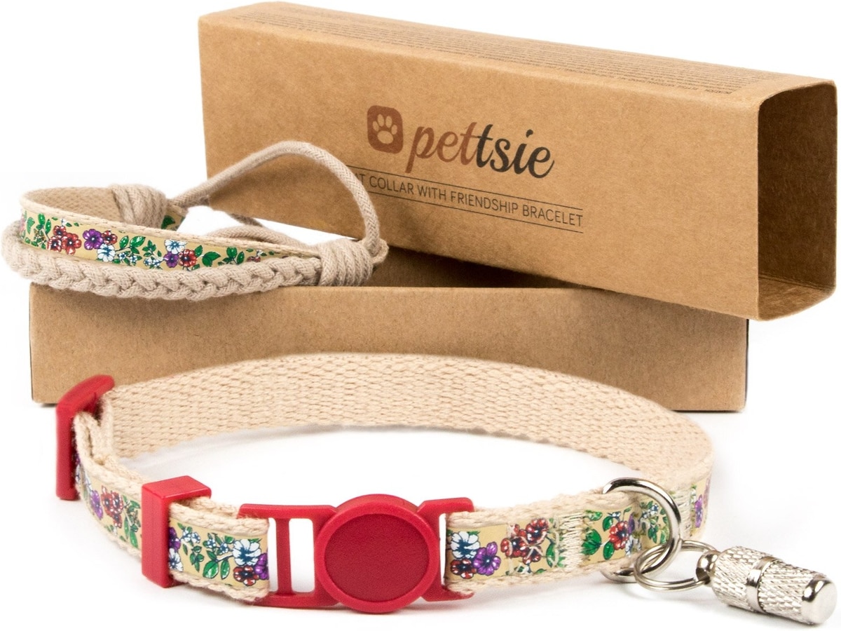 Pettsie Flower Cat Collar with Friendship Bracelet, Red, 7.5-in