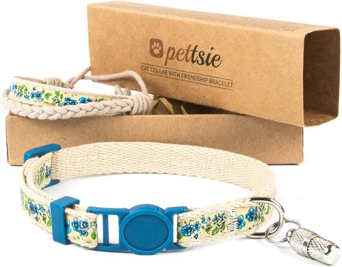 Pettsie Flower Cat Collar with Friendship Bracelet, Blue, 7.5-in