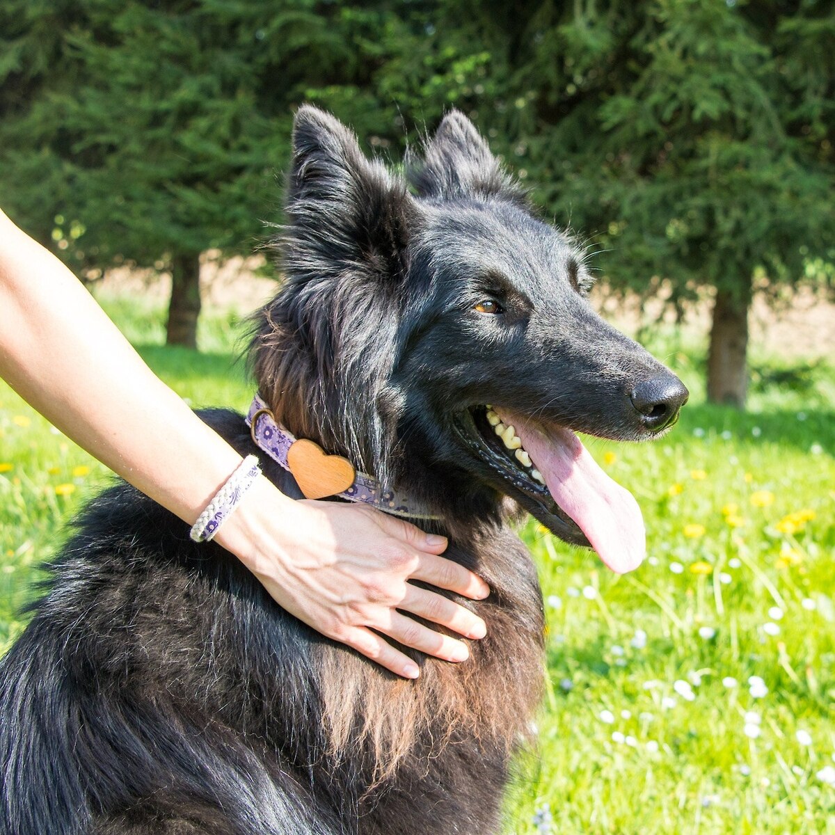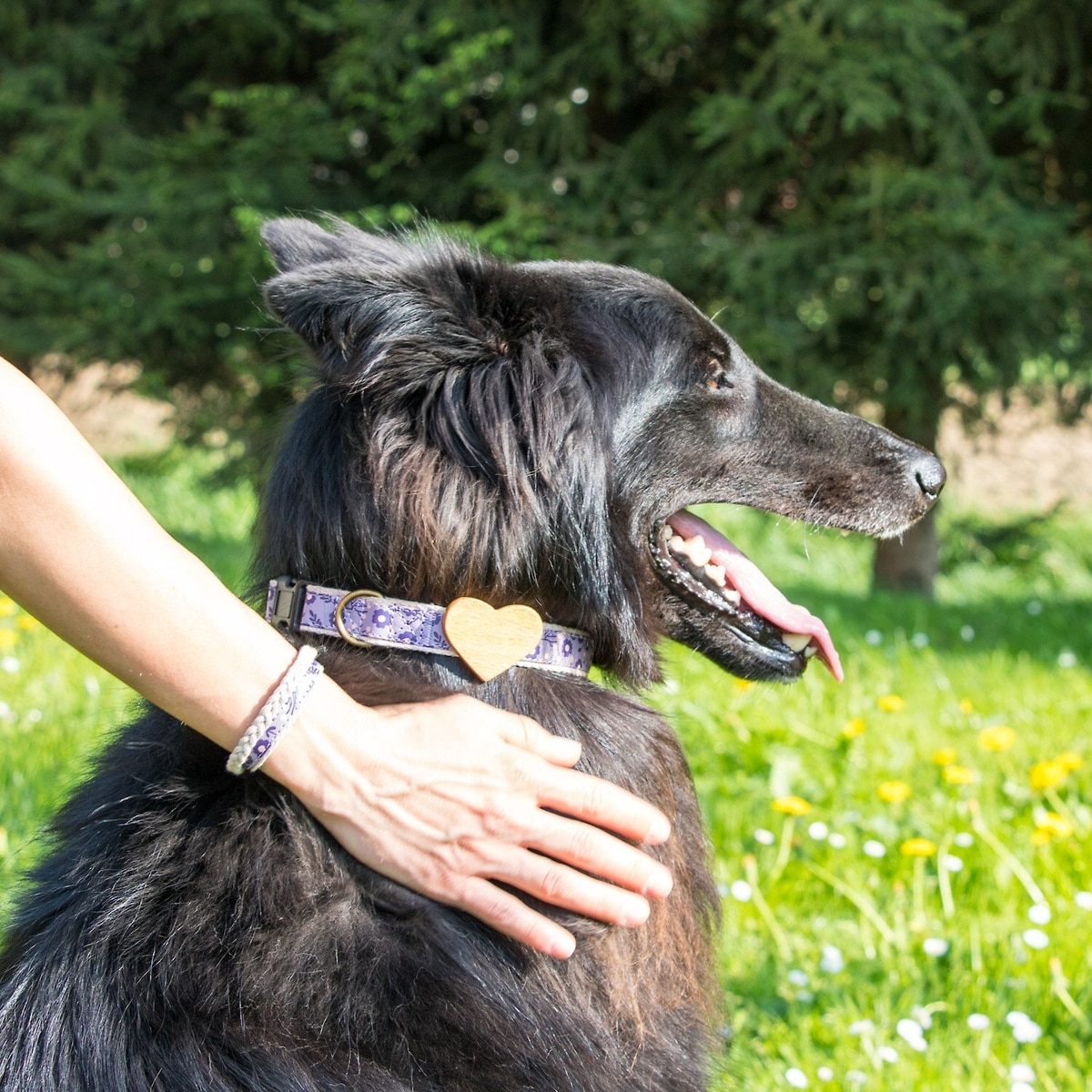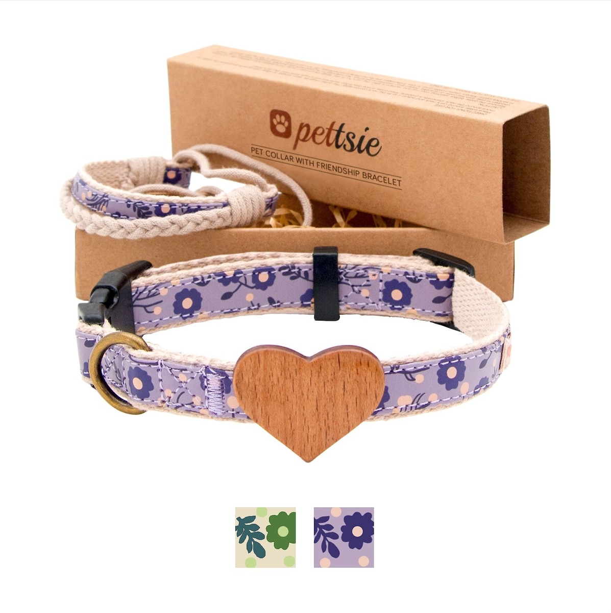 The Small collar has a 3/5 inch width and the Medium collar has a 4/5 inch width.