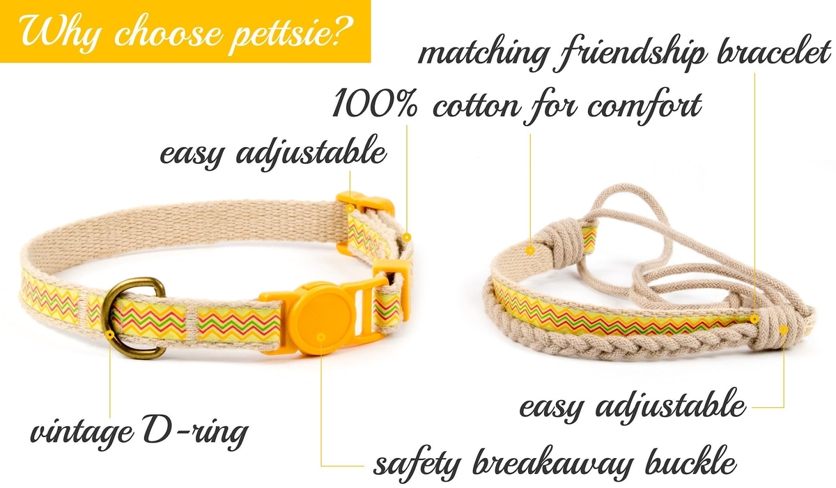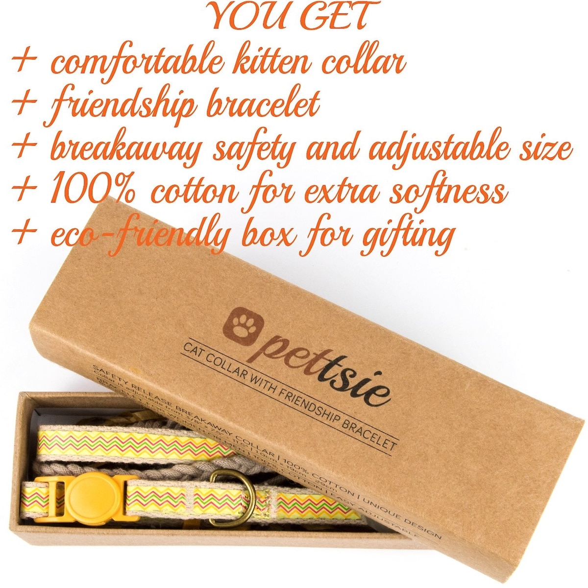 - Comes with 1 collar for your kitten with a vintage D-ring for a bell and ID tags, and a matching friendship bracelet for you.