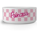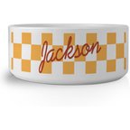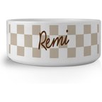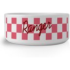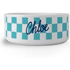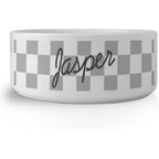 PGS Checkered Pattern with Script Name Small Pet Bowl, 7 x 2 7/8-in, Navy/White