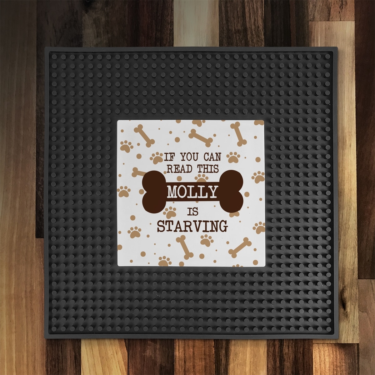 PGS If you can read this Name with Dog Bone Square Printed Bar Small Pet Mat, Brown/White/Black, 12 x 12-in