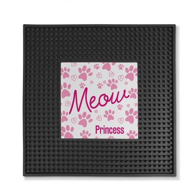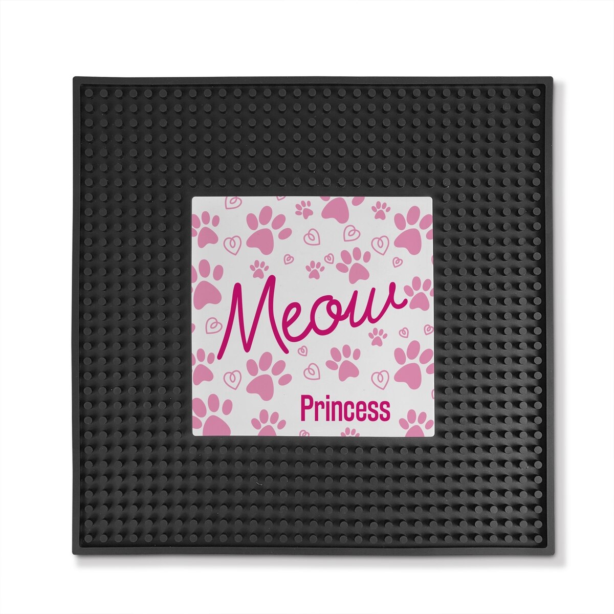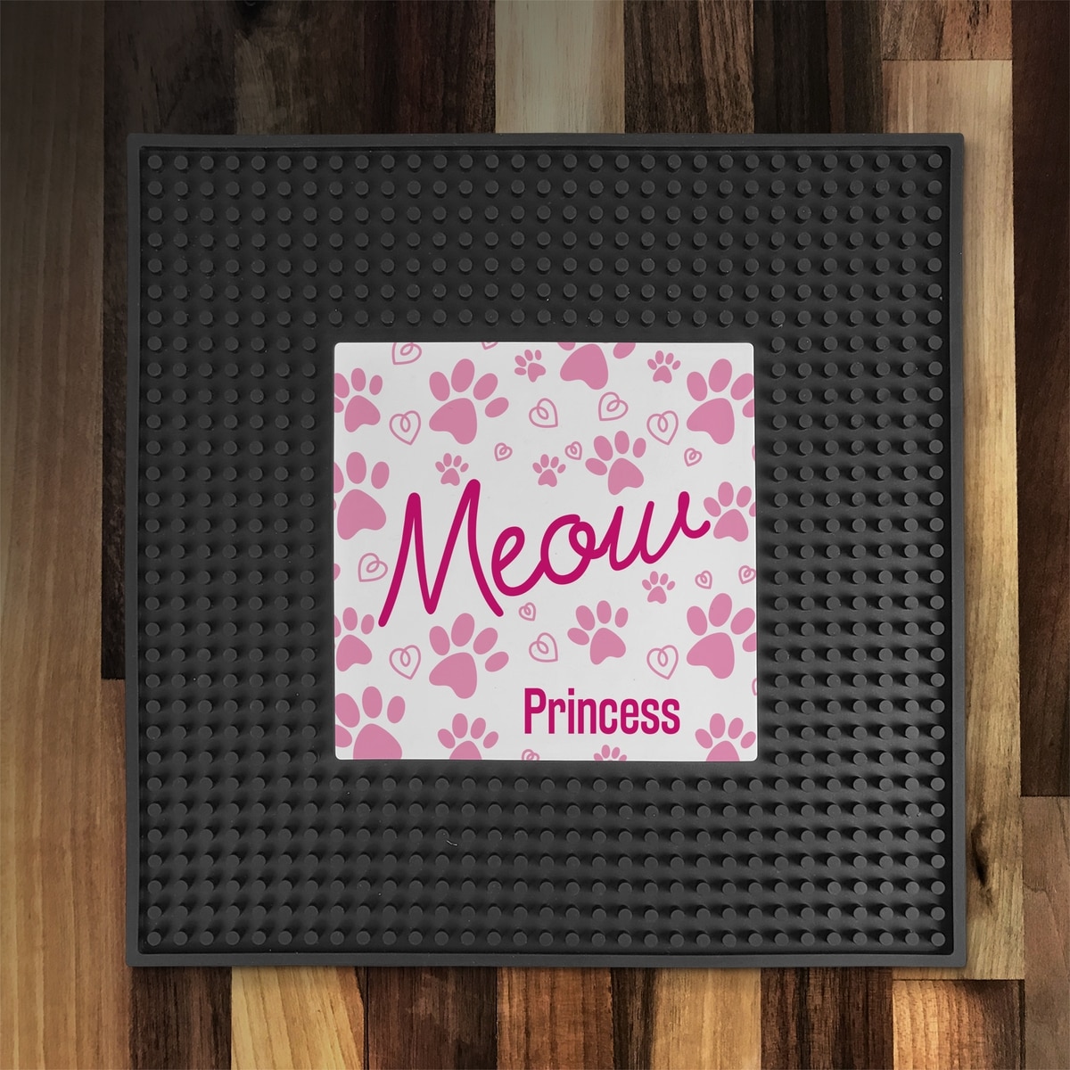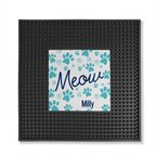 PGS Meow with Paw Print Pattern Square Printed Small Pet Mat, 12 x 12-in, Fuschia/Black/White