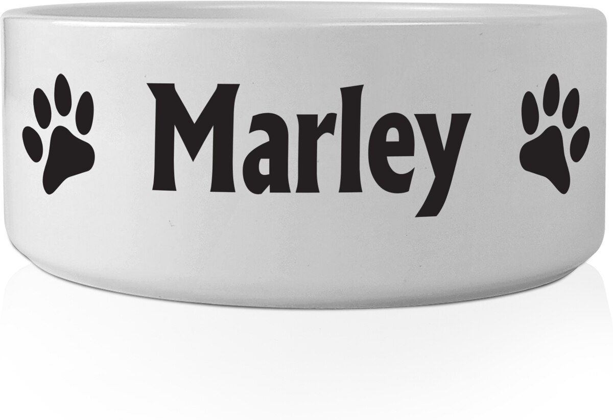 PGS Paw Name Paw Small Pet Bowl, Black/White, 7 x 2 7/8-in